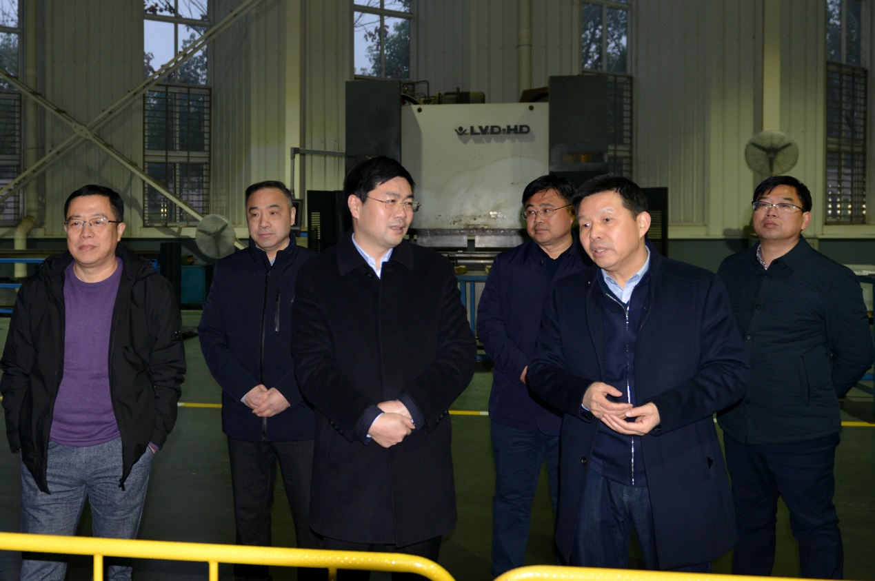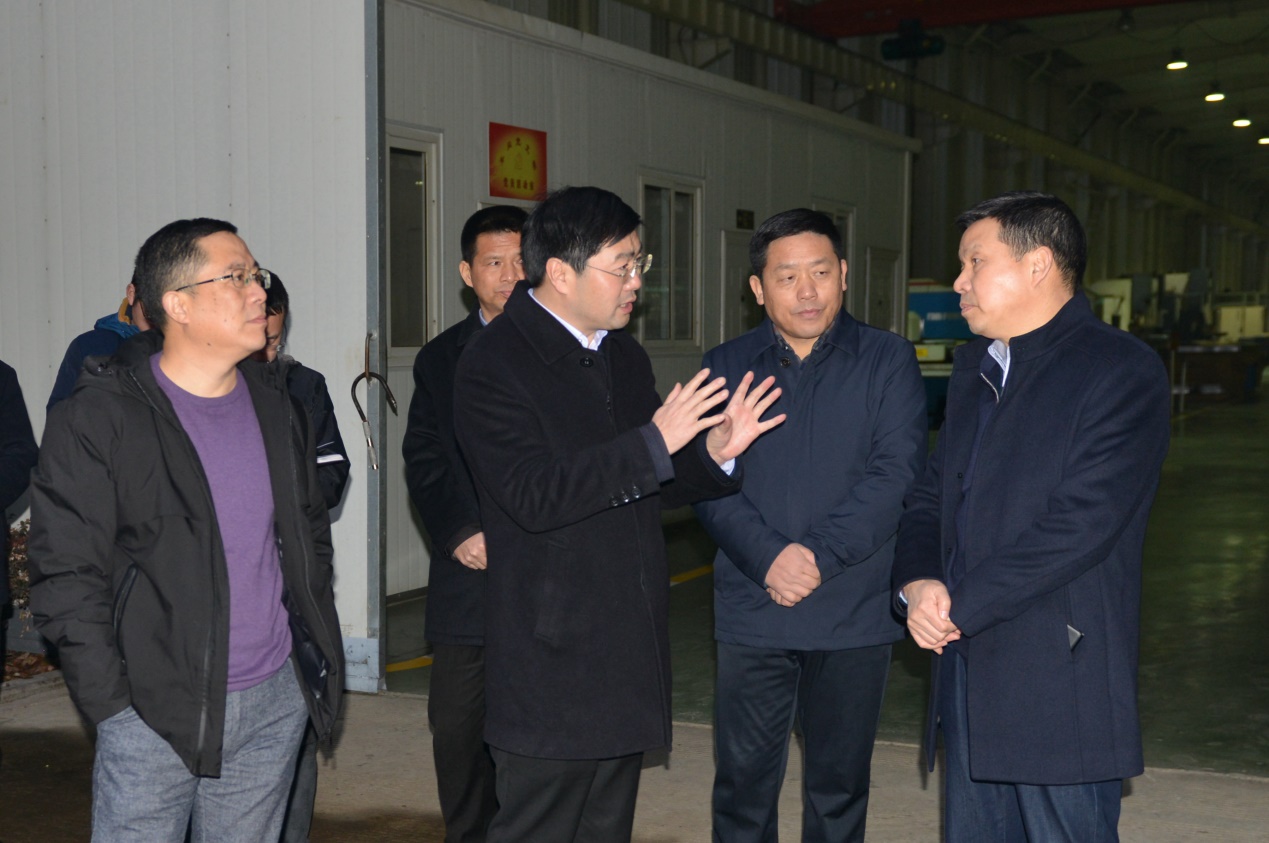 2019年1月2日下午,市委副書記、代理市長楊興銘調(diào)任天門后第一次調(diào)研就來到天門紡機,公司董事長沈方勇、總經(jīng)理焦倫進(jìn)、黨委書記魯?shù)挛呐阃瑮钍虚L參觀了生產(chǎn)現(xiàn)場。