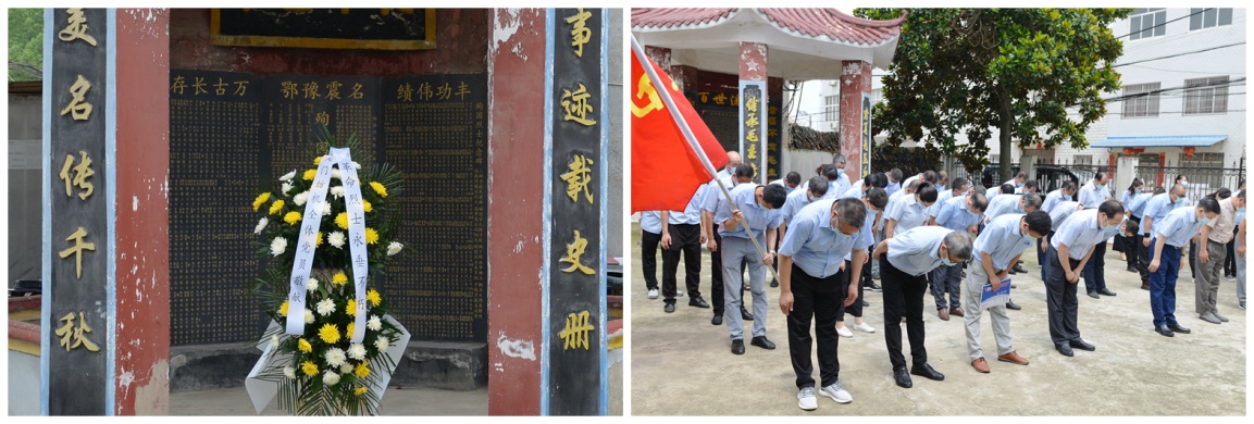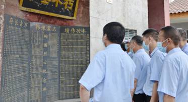 在烈士陵園,石家河鎮(zhèn)委副書記、鎮(zhèn)長謝紅宜講述了烈士陵園的歷史背景和抗日戰(zhàn)爭時(shí)期發(fā)生在石家河西河橋阻擊戰(zhàn)的革命歷史,黨員們認(rèn)真聆聽并仔細(xì)觀看陳列柜里的革命文物,尤其是通過了解“名震豫鄂”石碑可歌可泣的英雄事跡,讓黨員們仿佛回到了那個(gè)炮火紛飛,革命先烈拋頭顱、灑熱血、視死如歸的年代。黨員們交流感悟,心生敬意,深刻緬懷長眠于此的356名新四軍指戰(zhàn)員。