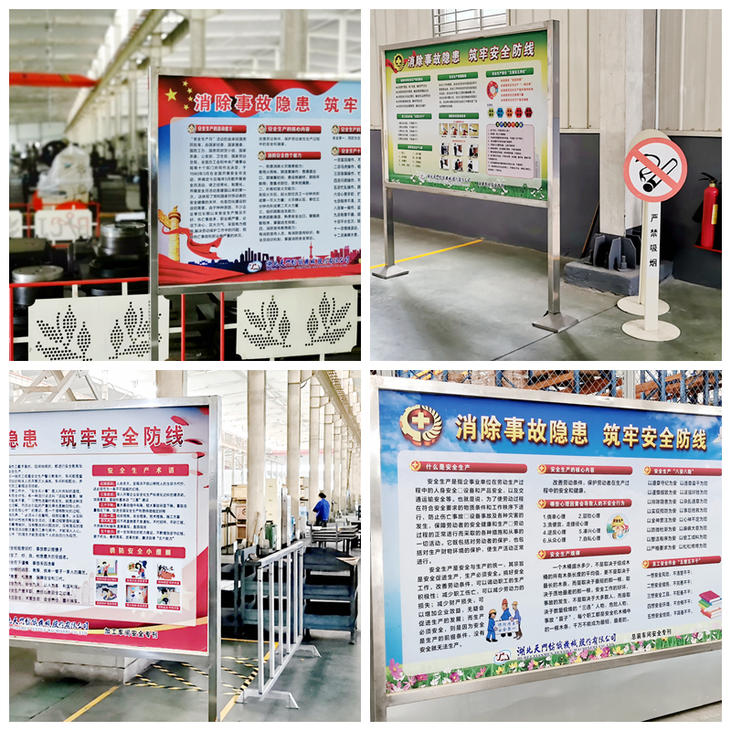 公司在重點區(qū)域懸掛安全標語、設立安全??B(tài)化進行全員安全教育