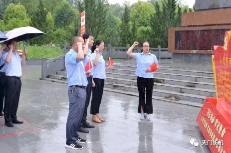 上午11點(diǎn),風(fēng)雨交加,全體黨員頂風(fēng)冒雨,整裝列隊(duì),向湘鄂西蘇區(qū)瞿家灣革命烈士紀(jì)念碑鞠躬默哀。新老黨員齊舉右手,面向黨旗莊嚴(yán)宣誓:“我志愿加入中國共產(chǎn)黨……”錚錚誓言彰顯了永恒初心。