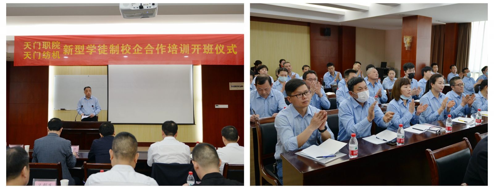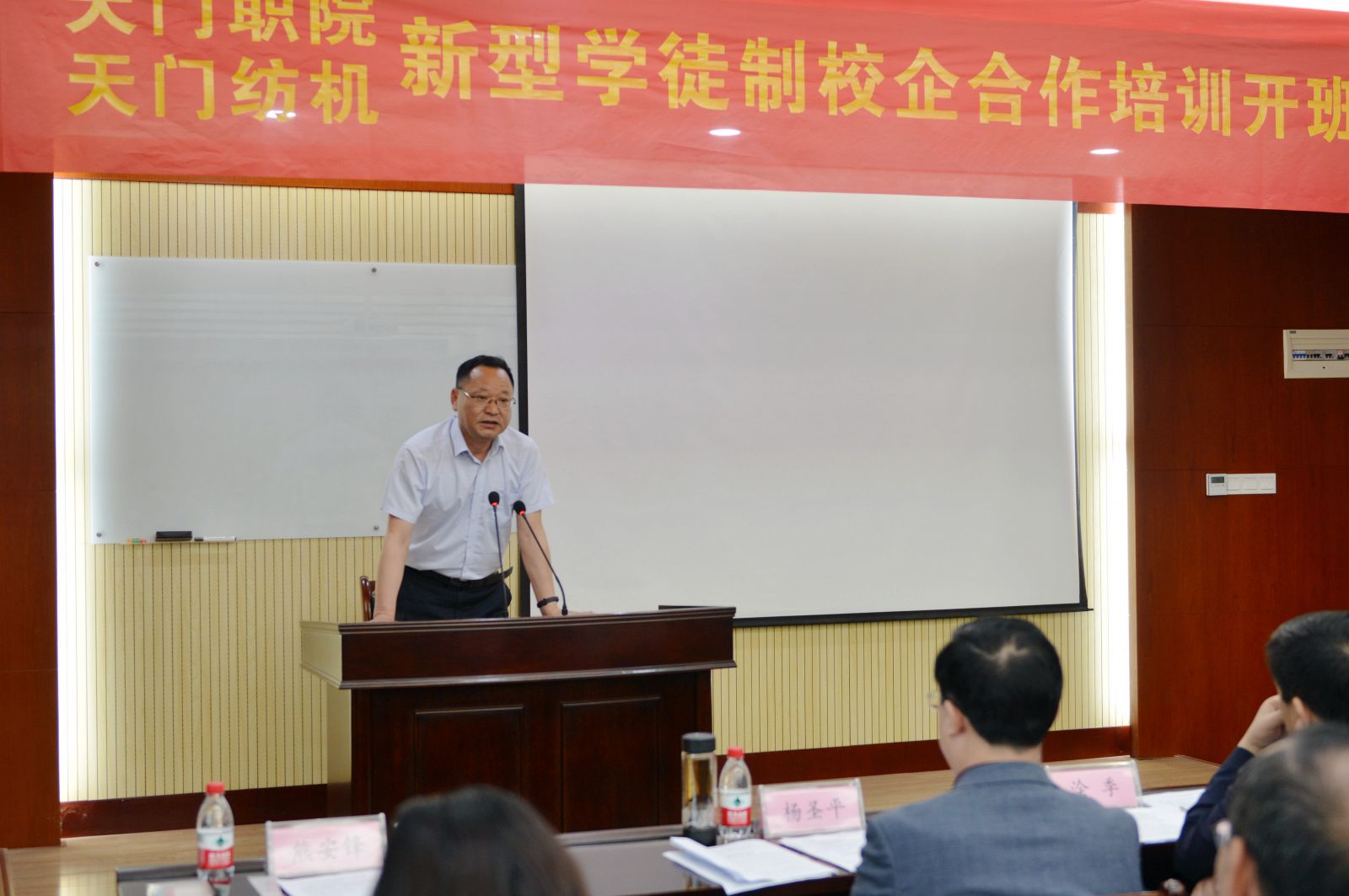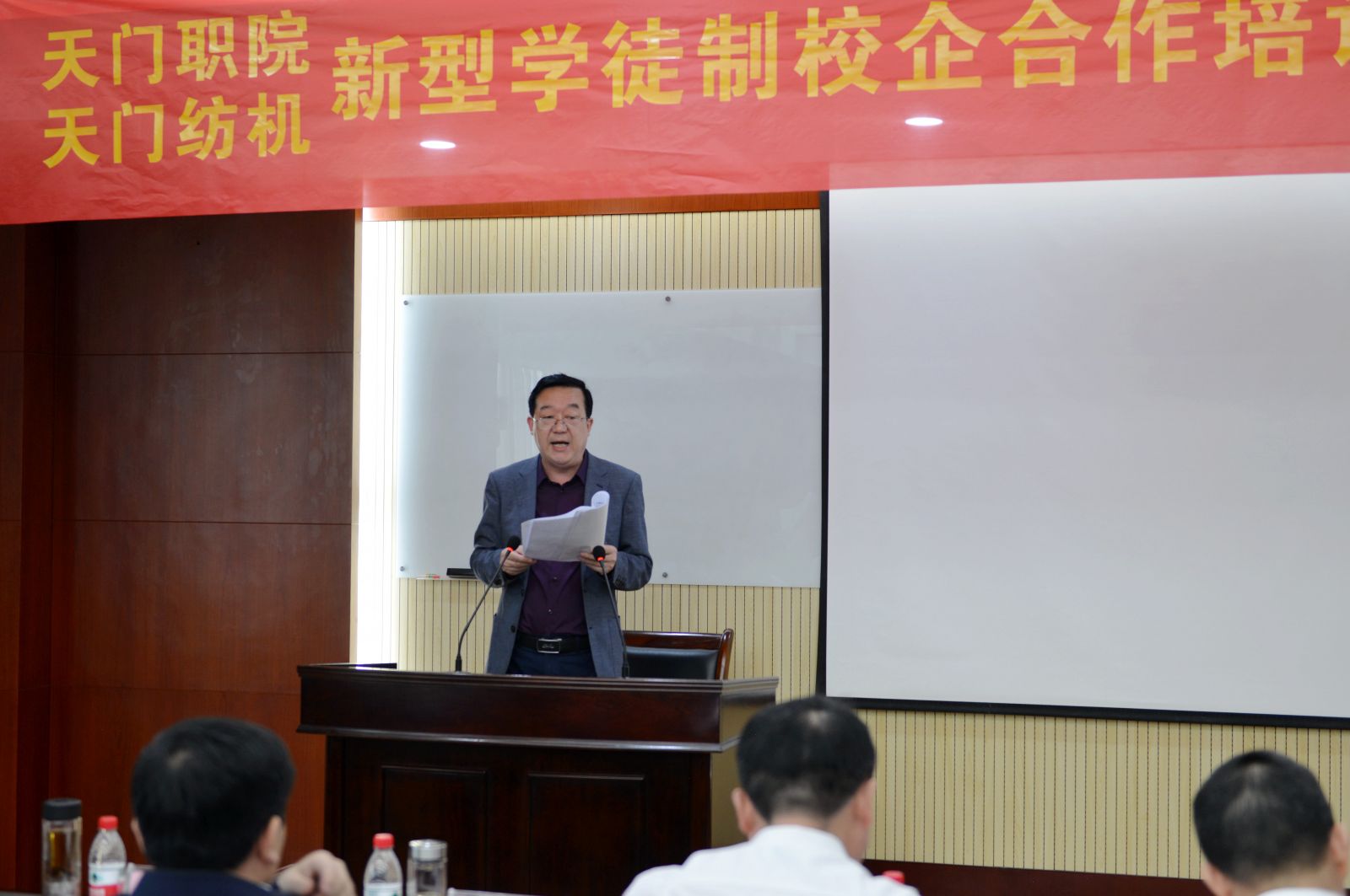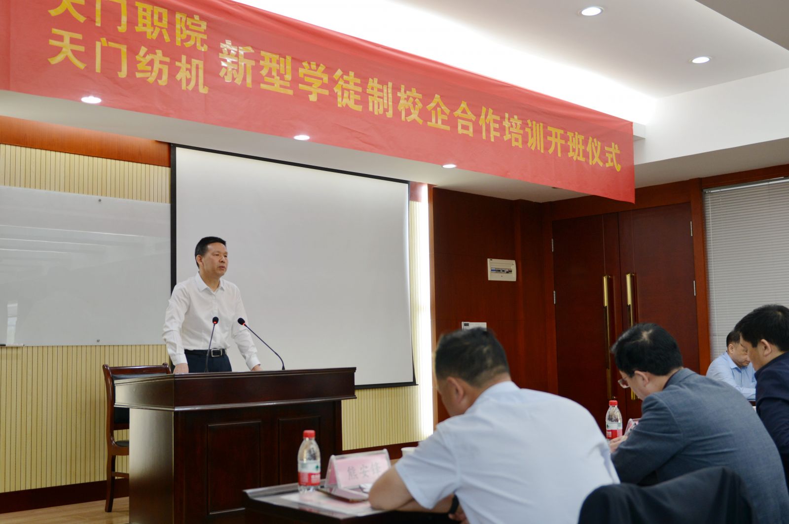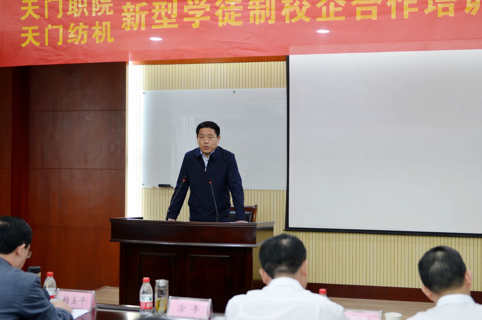 全國人大代表天門紡機董事長沈方勇在致辭中表達了對市委、市政府長期以來關(guān)心支持天門紡機發(fā)展的感激之情,并對高度重視人才工作、為企業(yè)引薦和培養(yǎng)人才的市人社局、市經(jīng)信局等職能部門表達了由衷地贊賞和誠摯地謝意。他從企業(yè)實施人才戰(zhàn)略、實現(xiàn)高質(zhì)量發(fā)展的角度出發(fā),闡明了企校聯(lián)合開展新型學徒制技能人才培訓工作的必要性和重要性。同時,提了四點希望和要求:一是要把小事做大。培訓工作在企業(yè)生產(chǎn)經(jīng)營中只能算是一件小事,但涉及人才培養(yǎng)、關(guān)乎企業(yè)創(chuàng)新發(fā)展卻是一件大事。因此,天門紡機與天門職院聯(lián)合開辦的新型學徒制技能人才培訓一定要辦出特色,成為樣板,以便在全市推廣,擴大覆蓋面,起到更大的示范引領(lǐng)作用;二是把大事做好。要精心組織準備,落實教學方案;三是把好事做實。企校聯(lián)合辦學不是走秀,而是要實實在在開展工作,收到實效。對企業(yè)來說,實操比理論更重要;四是把實事做久。企業(yè)技能人才培訓工作不是一朝一夕就能完成的事情,我們要以企校聯(lián)合培訓為契機,形成企業(yè)人才培訓長效機制,久久為功。