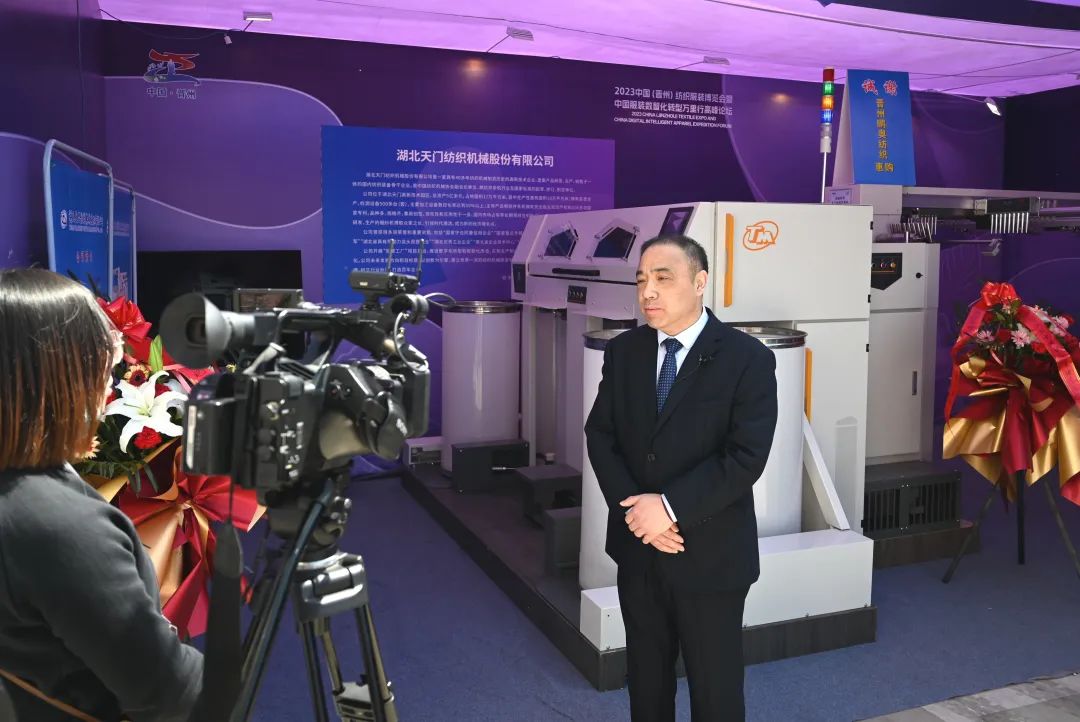 天門(mén)紡機(jī)總經(jīng)理焦倫進(jìn)接受新聞媒體采訪(fǎng)