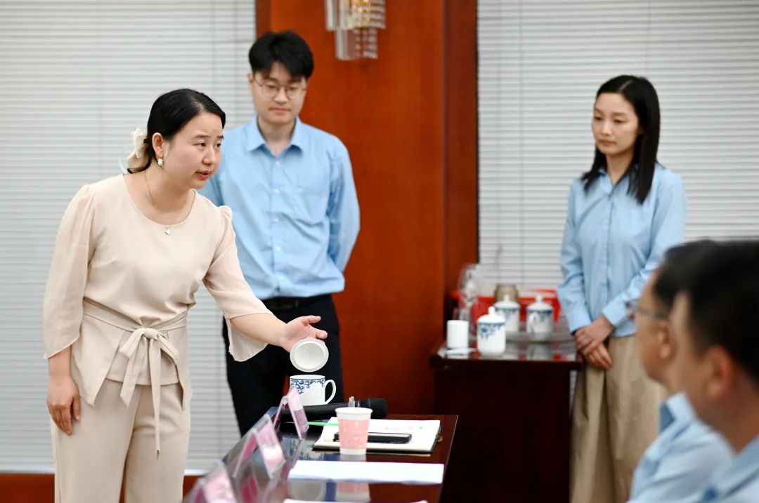 本次培訓邀請到了天門職業(yè)學院禮儀講師丁毓女士,她以職場禮儀形象為主講內(nèi)容,從最常見的會面禮儀、接待倒茶禮儀、會議禮儀、酒桌禮儀等進行教學,并通過現(xiàn)場模擬擺席卡、倒茶、握手、遞名片等方式與員工互動。老師傾囊相授,員工認真領(lǐng)會,課堂氣氛緊張而活躍。