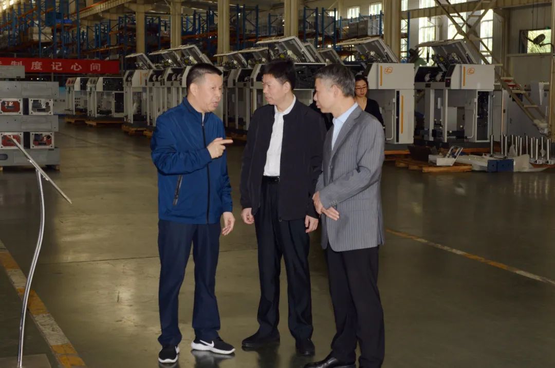 在車(chē)間現(xiàn)場(chǎng),沈方勇董事長(zhǎng)向單院長(zhǎng)一行介紹了天門(mén)紡機(jī)目前的生產(chǎn)經(jīng)營(yíng)狀況、智慧工廠項(xiàng)目建設(shè)進(jìn)展以及近年來(lái)科技開(kāi)發(fā)取得的成績(jī);詳細(xì)介紹了正在調(diào)試并即將赴上海參展的多臺(tái)全新樣機(jī)的情況。