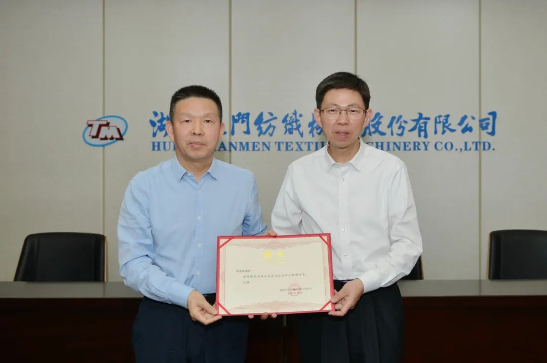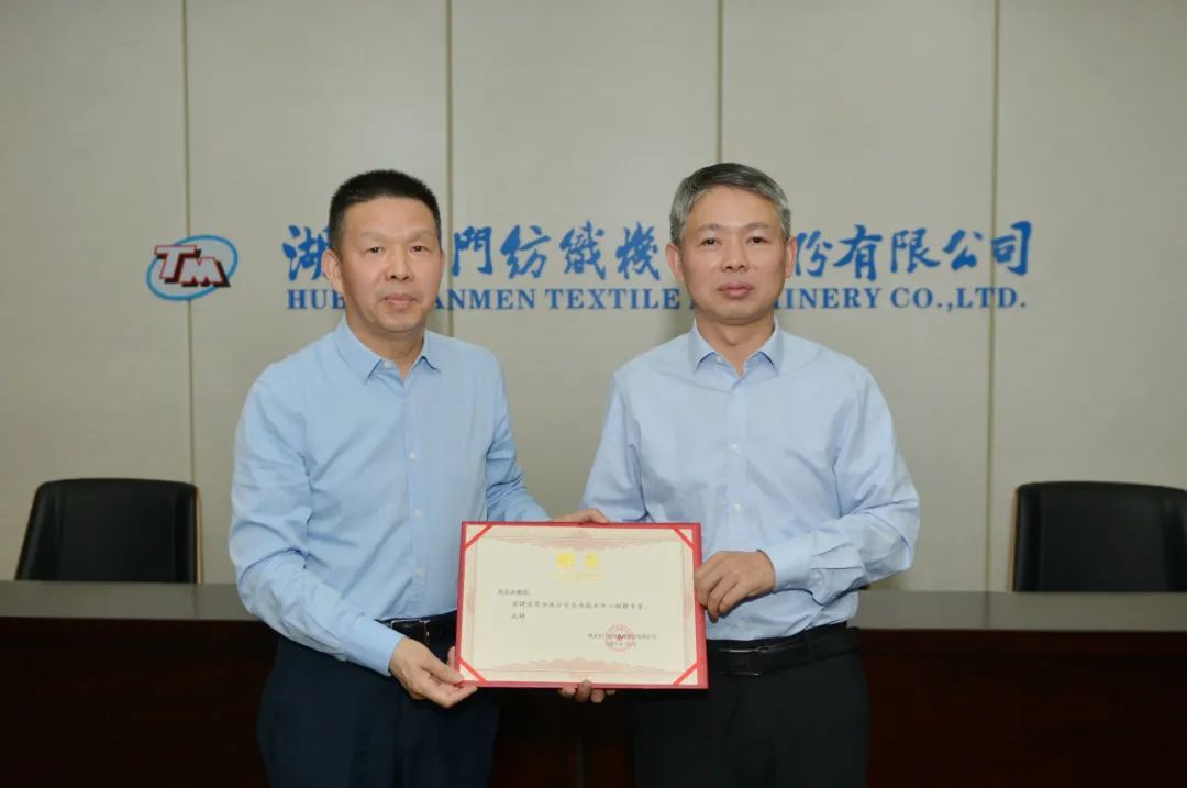 座談會(huì)后,沈董事長(zhǎng)代表天門(mén)紡機(jī)向單教授等3位老師頒發(fā)了特聘專(zhuān)家證書(shū)。