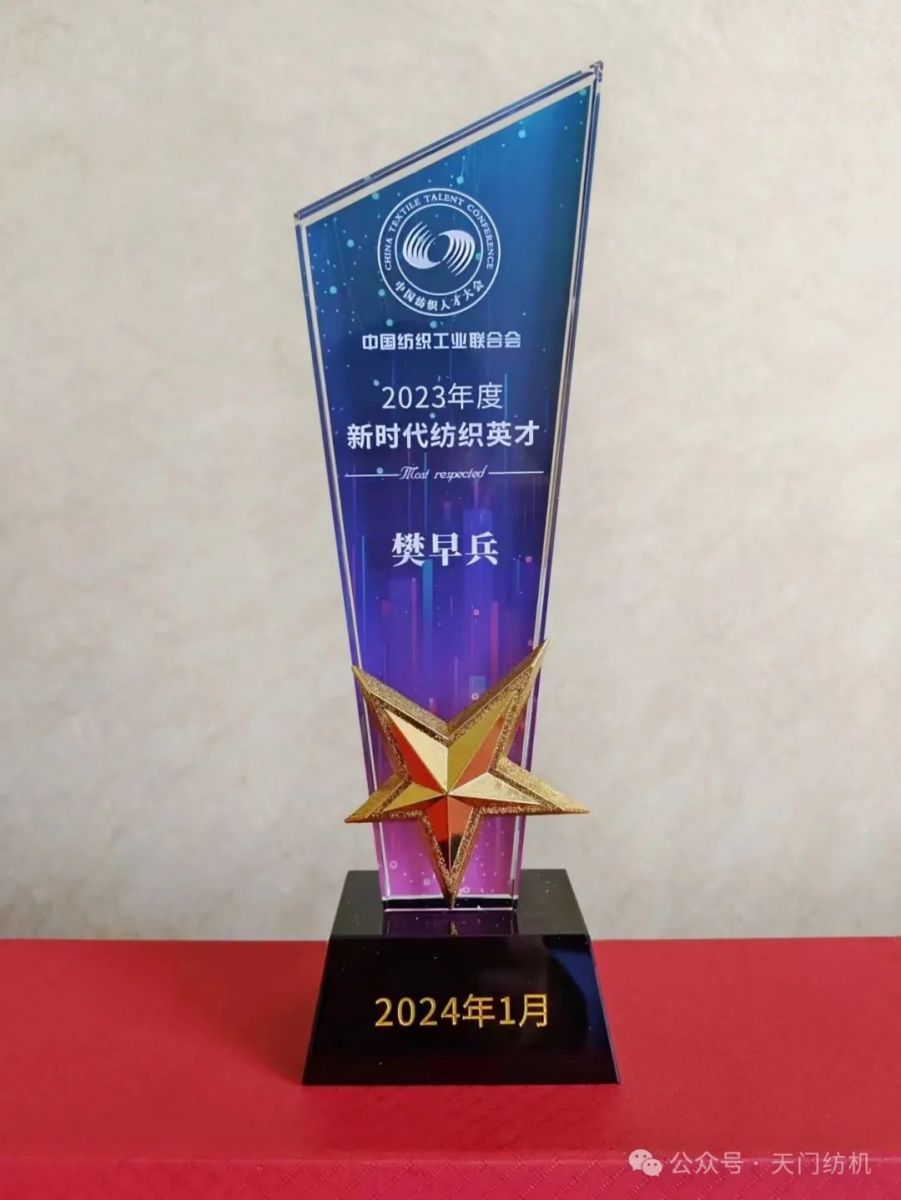 2024年1月16日,樊早兵同志在全國(guó)人大會(huì)議中心參加“2023年中國(guó)紡織人才大會(huì)”,受到中紡聯(lián)表彰,獲得“2023年度新時(shí)代紡織英才”獎(jiǎng)牌和榮譽(yù)證書。