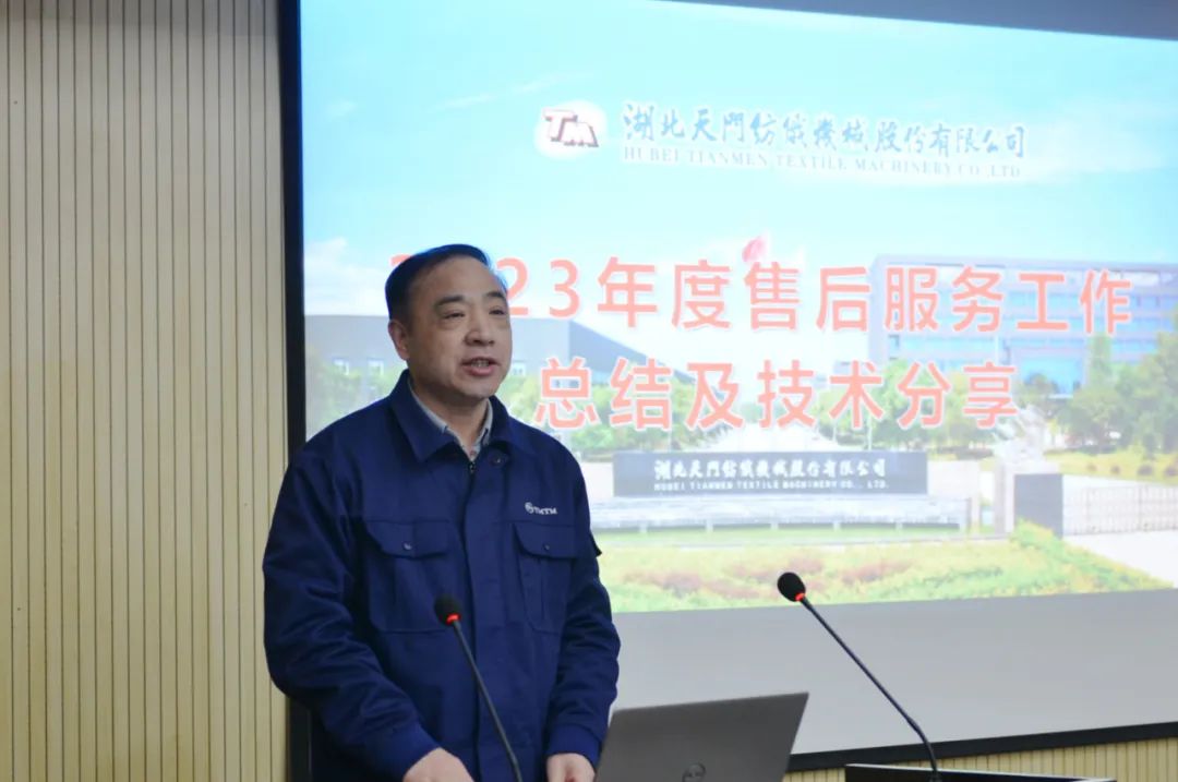 17名售后服務(wù)人員作了2023年度工作總結(jié)及技術(shù)交流;樊早兵總監(jiān)作專業(yè)知識講座;鄭強(qiáng)總工程師安排布置了T1系列并條機(jī)改進(jìn)工作事項(xiàng);楊文峰副總經(jīng)理作案例分享;于少波主任作經(jīng)驗(yàn)分享。