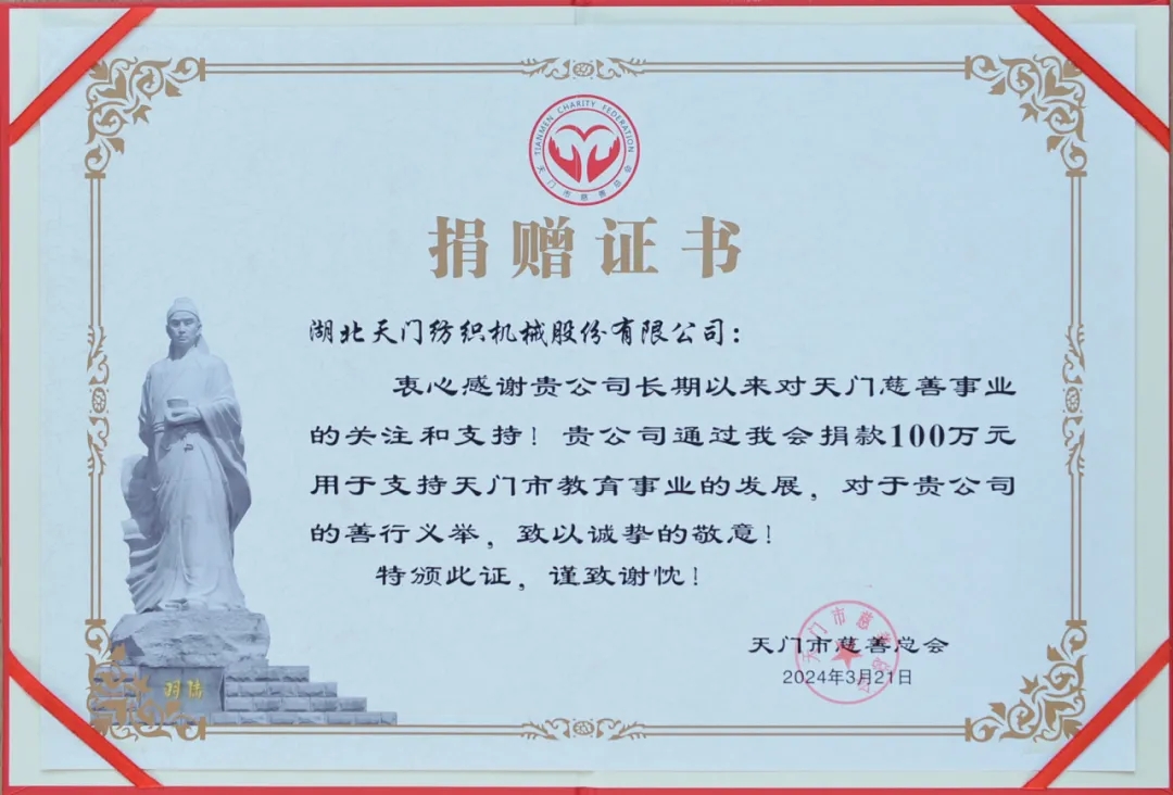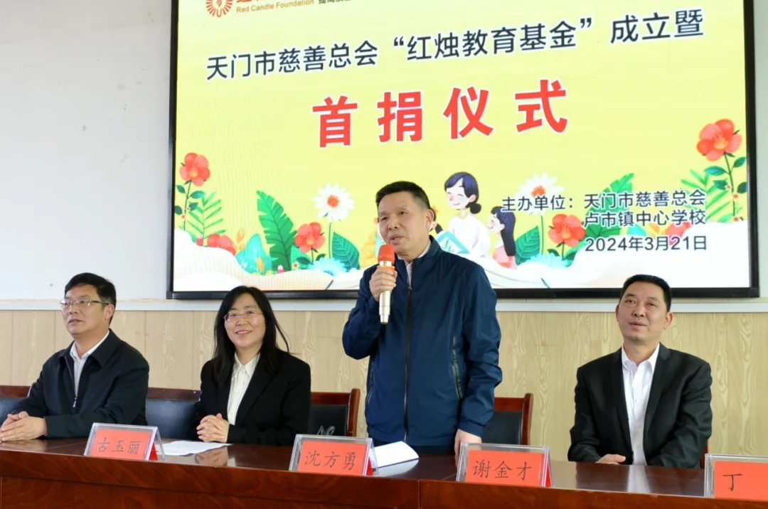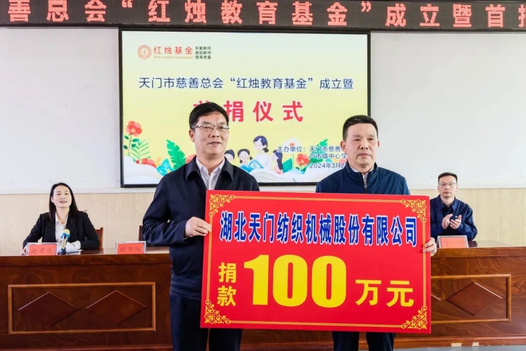 2024年3月21日,天門紡機(jī)董事長(zhǎng)沈方勇出席在天門市盧市鎮(zhèn)盧家口中學(xué)舉行的天門慈善總會(huì)“紅燭教育基金”成立暨首捐儀式,同天門市慈善總會(huì)、教育局三方簽訂了《天門市慈善總會(huì)“紅燭教育基金”協(xié)議書》,并現(xiàn)場(chǎng)捐贈(zèng)100萬(wàn)元,用于獎(jiǎng)勵(lì)盧市鎮(zhèn)優(yōu)秀教師和幫扶困難教師等公益活動(dòng),助力盧市鎮(zhèn)教育高質(zhì)量發(fā)展。天門市人民政府副市長(zhǎng)古玉麗,天門市民政局局長(zhǎng)、市慈善總會(huì)會(huì)長(zhǎng)謝金才,天門市教育局局長(zhǎng)劉華陽(yáng),天門市慈善總會(huì)秘書長(zhǎng)李貴清,盧市鎮(zhèn)宣傳統(tǒng)戰(zhàn)委員劉恒超以及盧市鎮(zhèn)部分教師代表等參加首捐儀式。盧市鎮(zhèn)黨委書記趙君波主持儀式。