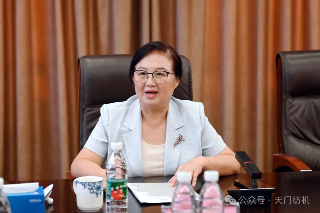 王玲主任聽完匯報(bào)后,對天門市委、政府強(qiáng)烈的責(zé)任擔(dān)當(dāng)、創(chuàng)新的理念思維、果敢的行動措施以及若干工作指標(biāo)在全省爭先競位的優(yōu)異表現(xiàn)給予了充分肯定和贊賞,并就如何進(jìn)一步做大做強(qiáng)服裝電商產(chǎn)業(yè)等問題,提出了“擴(kuò)大全球視野、強(qiáng)化平臺建設(shè)、提高品牌效應(yīng)、優(yōu)化協(xié)作機(jī)制、整合社會資源”等方面的意見和建議。王玲主任在肯定天門紡機(jī)面對機(jī)遇挑戰(zhàn)取得良好經(jīng)營業(yè)績的同時(shí),對沈方勇董事長給予了很高的評價(jià)。她強(qiáng)調(diào),沈方勇同志身為十三屆全國人大代表和中國紡機(jī)協(xié)會副會長,有很強(qiáng)的社會責(zé)任感和民族工業(yè)情懷,有不斷創(chuàng)新的發(fā)展理念與思維,有優(yōu)秀的個(gè)人品質(zhì)和意志力。他幾十年如一日心無旁騖,堅(jiān)守實(shí)業(yè),堅(jiān)持紡織機(jī)械主業(yè),將傳統(tǒng)產(chǎn)業(yè)打造成具有國際競爭力和影響力的明星企業(yè),成為地方的一張名片和行業(yè)的一面旗幟。她希望天門紡機(jī)在沈方勇同志的帶領(lǐng)下,積極響應(yīng)黨中央、國務(wù)院關(guān)于推動“兩新”的號召,抓住國家新一輪經(jīng)濟(jì)增長的契機(jī),促進(jìn)更快更好地發(fā)展,為地方經(jīng)濟(jì)和行業(yè)高質(zhì)量發(fā)展作出更大貢獻(xiàn)。