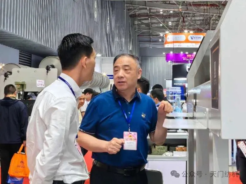 越南展會(huì)現(xiàn)場(chǎng)人流如織,其中天門(mén)紡機(jī)展區(qū)尤為矚目,開(kāi)展期間分別迎來(lái)HANO SIMEX、VICOTEX、HONG LINH、NHA TRANG、THANG CONG、PHU BAI等50余家越南紡企的到訪,T1系列并條機(jī)憑借卓越性能表現(xiàn),引發(fā)現(xiàn)場(chǎng)觀眾駐足,多位老客戶(hù)對(duì)T1系列并條機(jī)的穩(wěn)定性與高效產(chǎn)能給予高度評(píng)價(jià)。