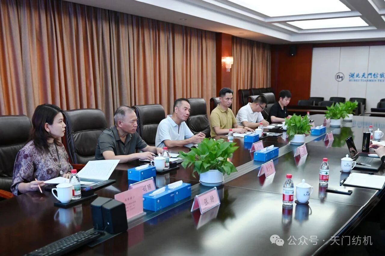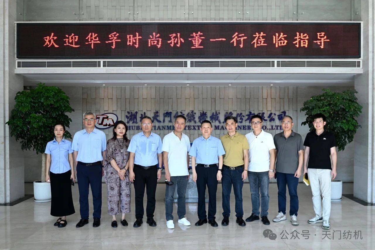 2025年8月26日,華孚時尚股份有限公司董事長孫偉挺一行6人專程到訪天門紡機進行考察交流。公司董事長沈方勇等領導熱情接待到訪客人,雙方圍繞行業(yè)形勢及協(xié)同發(fā)展等議題進行了深入交流,并就淮北及越南等新建項目的再次合作達成意向。